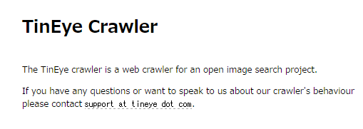 ご不明な点がございましたら、クローラの動作についてお問い合わせください。tineye.comまでご連絡ください。